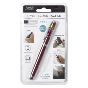 Mettez-vous au tactile avec ce stylet 4 en 1 et découvrez des sensations nouvelles ! Détail : Stylo – Stylet tactile – Laser – Lampe LED – 3 piles incluses.