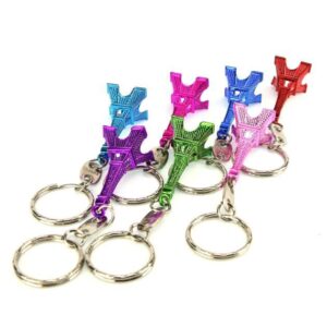 100 Porte clés Tour Eiffel métal couleur mélangé pour offrir une collection, un cadeau insolite pour un dîner… Dimension environ: Hauteur: 4.2 cm, ( sans compter la chaîne et l’anneau ) Base: 2.2 cm