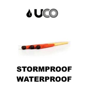 Les allumettes UCO Survival sont plus compactes et plus légères que les allumettes étanches UCO Stormproof. Elles sont totalement étanches. Elles ne s’éteignent pas en plein vent. Il s’agit véritablement d’allumettes de survie. La petite boîte étanche les protège contre les agressions extérieures et les rend facile à transporter : elles s’intègrent facilement dans un kit de survie. Boîte et allumettes sont vendues ensemble sous l’appellation : Survival Match Kit UCO.