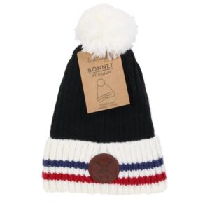 Protégez-vous du froid avec ce bonnet aux couleurs du pays ! – Design avec pompon et écusson – Taille unique