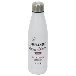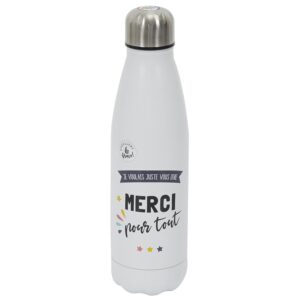 Nomade et pratique, cette bouteille de transport isotherme Merci est également esthétique ! Optez pour son joli motif ! – Composition : Acier Inoxydable