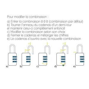 Protégez vos effets personnels durant vos voyages avec ce cadenas métallique à combinaison. La combinaison est facilement modifiable, à vous de définir vos chiffres clés! Détail : Notice incluse.