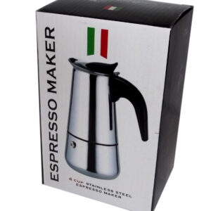 Détails Produit Caractéristiques: Cafetière en inox Capacité : 4 tasses* (environ 50ml/ tasse) Poignée en backelite noir Tous feux sauf induction *La notion ‘nombre de tasses’