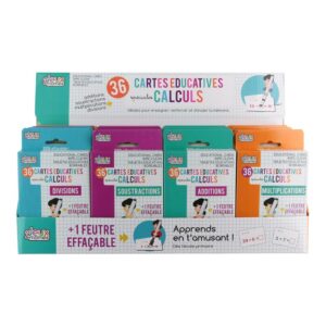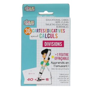 Ces 36 cartes éducatives dédiées au calcul aideront les enfants à apprendre de façon ludique. Ces cartes seront parfaites pour enseigner, renforcer et stimuler la mémoire. Détail : 36 cartes recto/verso effaçables et plastifiées – Instructions incluses – 1 Feutre effaçable inclus