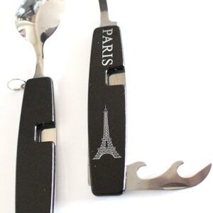 couteaux camping fourchette cuillère décapsuleur cadeaux souvenir de France Paris métal (NOIR)