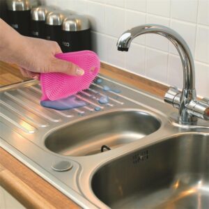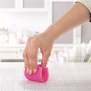 Aucun recoin ne vous résistera avec cette éponge souple en silicone. – Picots souples non abrasifs – Raclette intégrée – Rangement facile – Prise en main facile – Utilisation avec ou sans détergent – Facile d’entretien – Durable