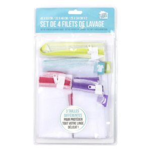 Ce set de 4 filets de lavage protègera votre linge délicat durant les lavages en machine. Les 3 tailles disponibles s’adapteront à merveille à vos linges, vous n’aurez plus de mal à retrouver vos vêtements délicats ou autres chausssettes au moment du repassage! Détail : 1 grand filet 45×53 cm – 1 filet moyen 33×46 cm – 2 petits filets 25×34 cm – Lavage en machine à 40 ° – Fermeture à glissière.