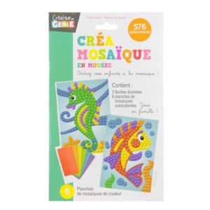 576 autocollants de rêve pour amuser et initier les enfants à la mosaïque ! Ce coffret offre 2 feuilles illustrées ainsi que 6 planches de mosaïques autocollantes. Détail : Design au choix.