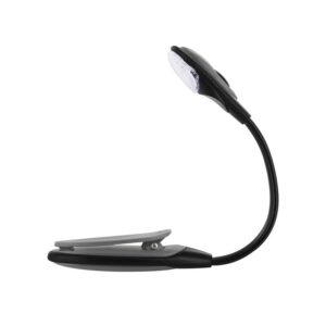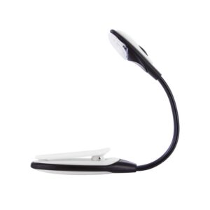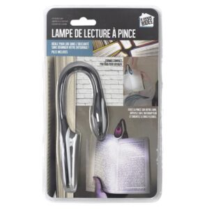 Lisez dans l’obscurité en toute tranquillité et sans déranger votre entourage avec cette lampe à pince. Fixez-la sur votre livre, appuyez sur l’interrupteur et orientez le bras flexible vers la direction la plus confortable. Ce format compact s’emporte partout ! – Piles incluses non remplaçables.