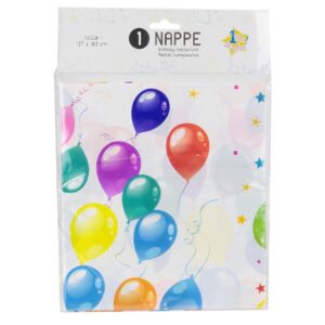 Dressez une jolie table avec cette nappe anniversaire superbement illustrée de ballons! Sa composition est anti-tâche, elle sera facile à nettoyer et réutilisable! Message : Joyeux anniversaire – Dimensions : 183×137 cm.