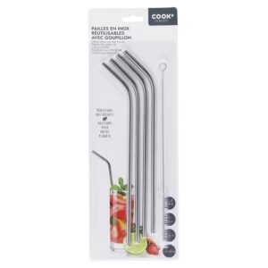 Ces 4 pailles en inox sont design, pratiques et réutilisables ! Elles seront parfaites pour vous accompagner lors de vos réceptions. – Goupillon inclus – Nettoyage facile