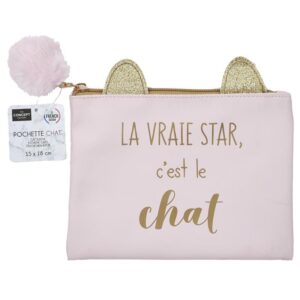 Les amatrices de chats vont aimer transporter leurs petits effets personnels de beauté dans cette pochette. – Système de fermeture à glissière – Dimensions : 15×18 cm